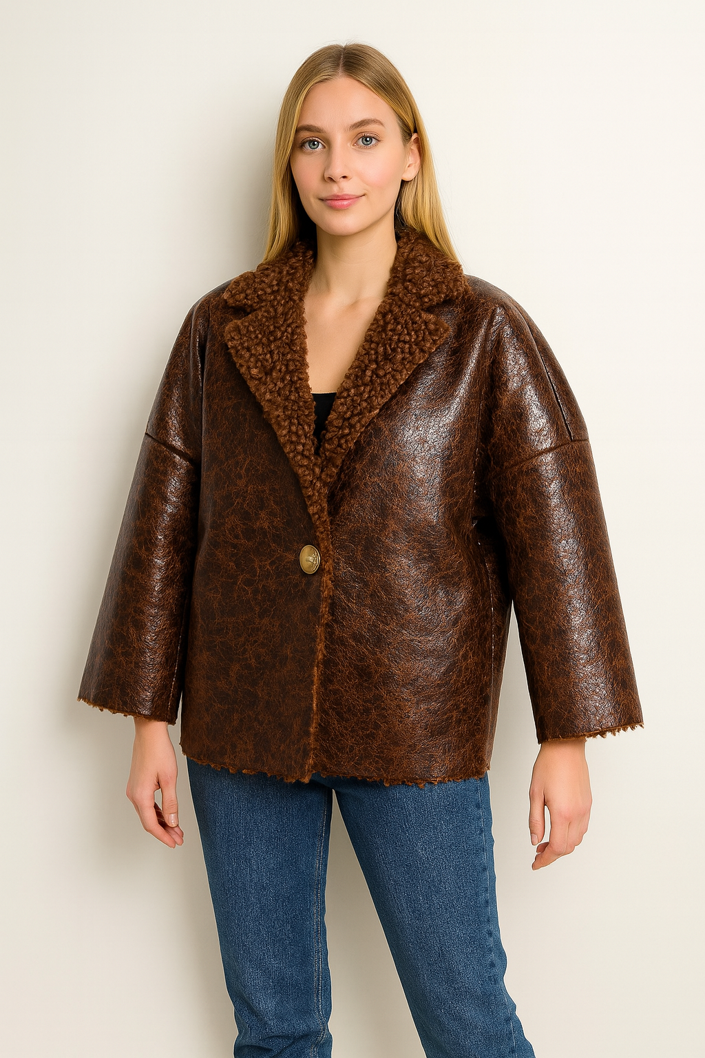 Giacca taglia S/M simil montone. Maniche reglan, un bottone.
