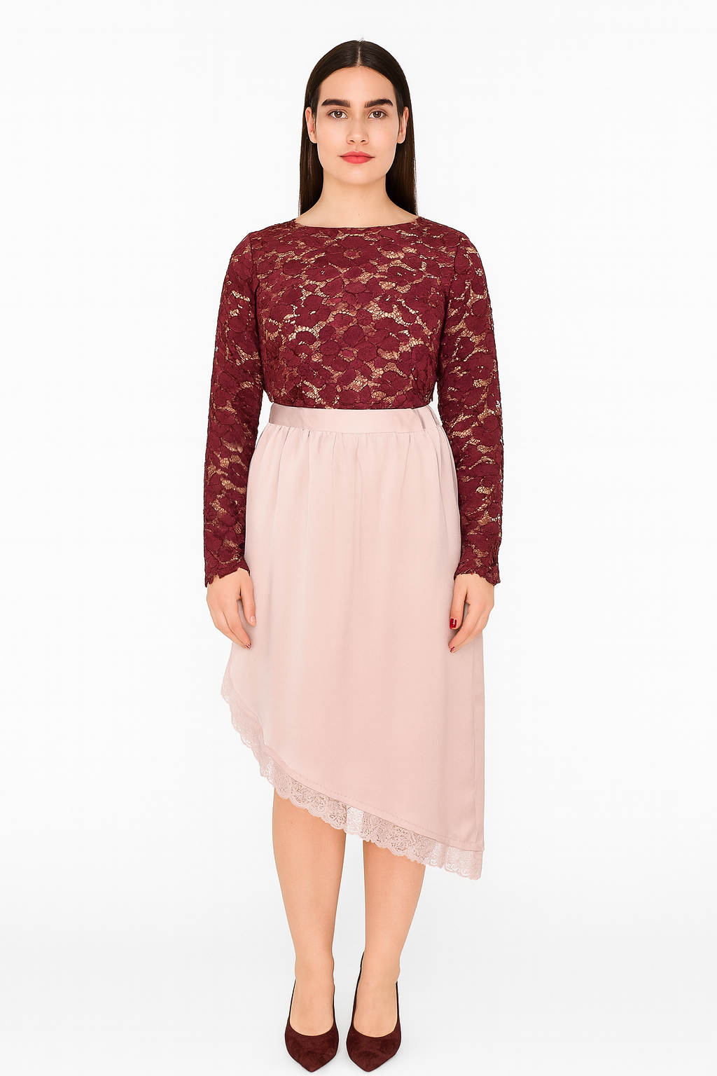 Gonna asimmetrica rosa. Elegante e di tendenza