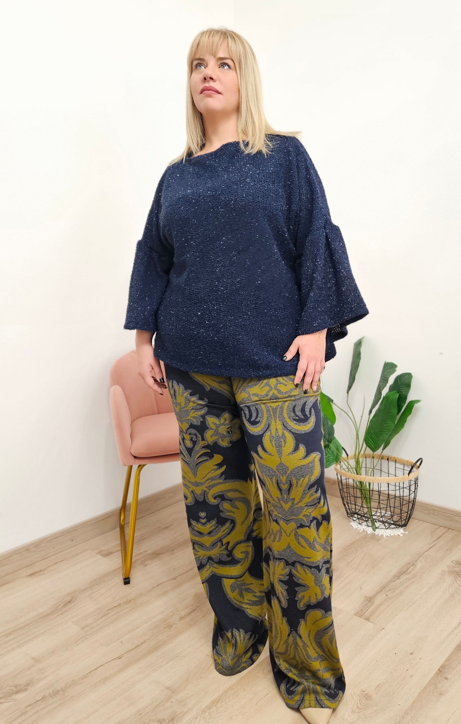 Pullover blu neavy, maniche ampie e scollatura a barca